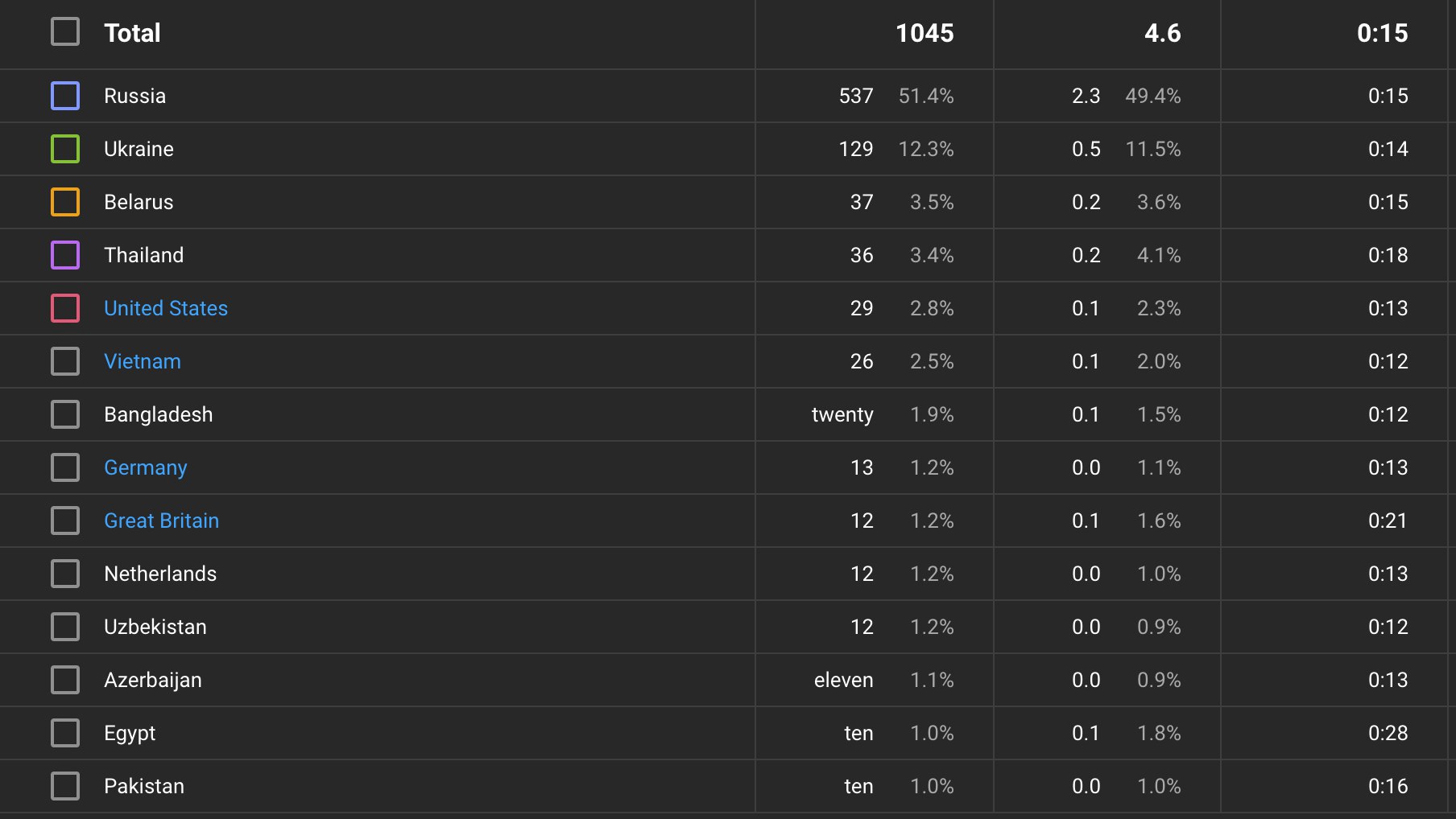 YouTube – Views | Country Targeted